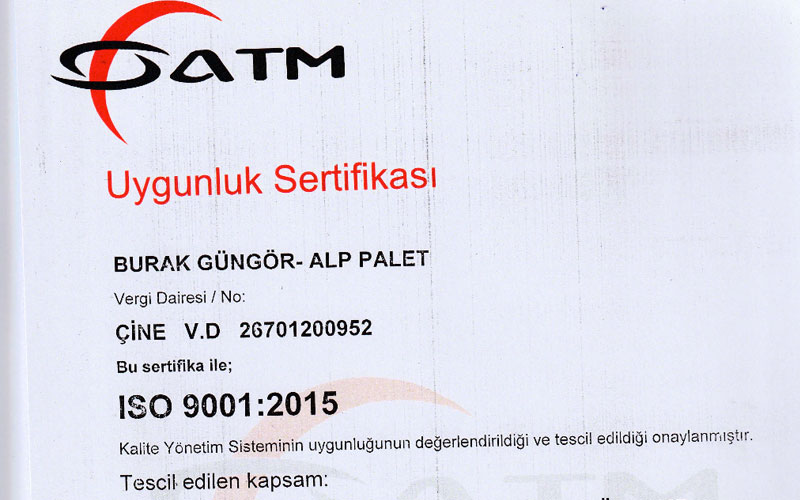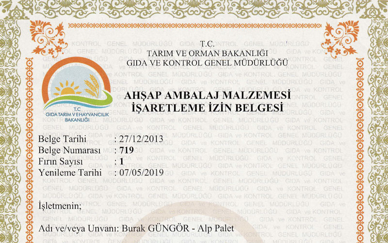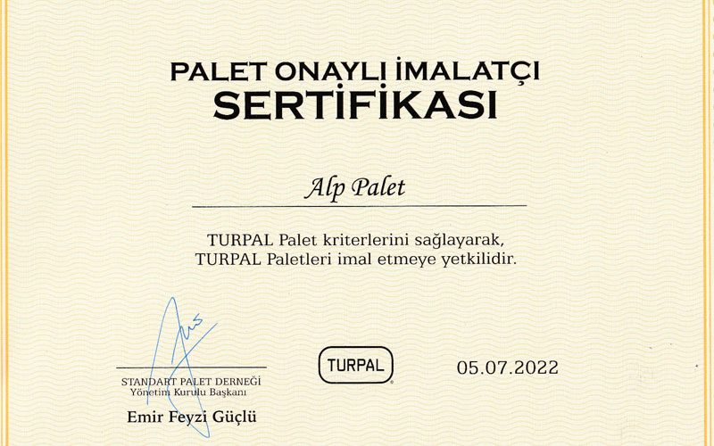 Alp Palet olarak yaptığımız işin yasallığına titizlikle önem veriyor, ürünlerimizin kalitesi ve güvenliğini gerekli sertifikalarımızla kanıtlıyoruz. Sadece Türkiye'de değil, uluslararası önem taşıyan belgelerimizle, her bir ürünümüzü beklenenin üstünde kalitede, standartları takip ederek ihracatçılarımız için hazırlıyoruz. Yaptığımız işin arkasında duruyor, ihracat süreçlerinde zorlukları kolaylaştıran ürünlerimizle güvenilir bir kurum olmaya devam ediyoruz.